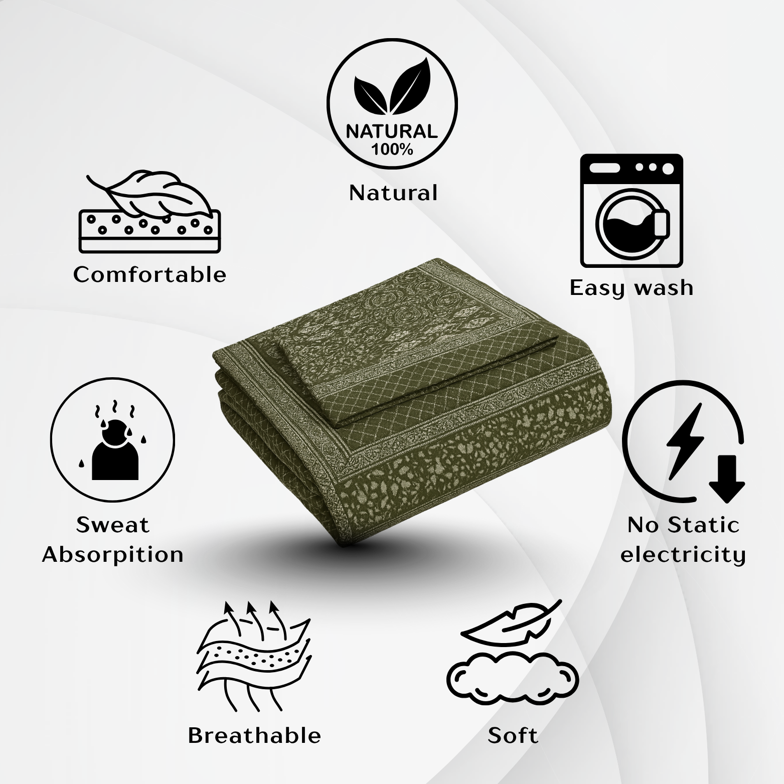 Hypoallergenic & Skin-Safe Tested for sensitive skin — prevents rashes, irritation, or heat-trapping while sleeping.